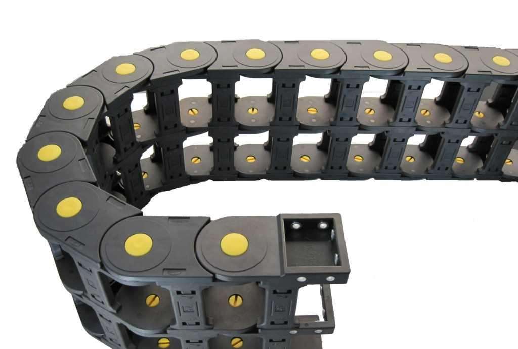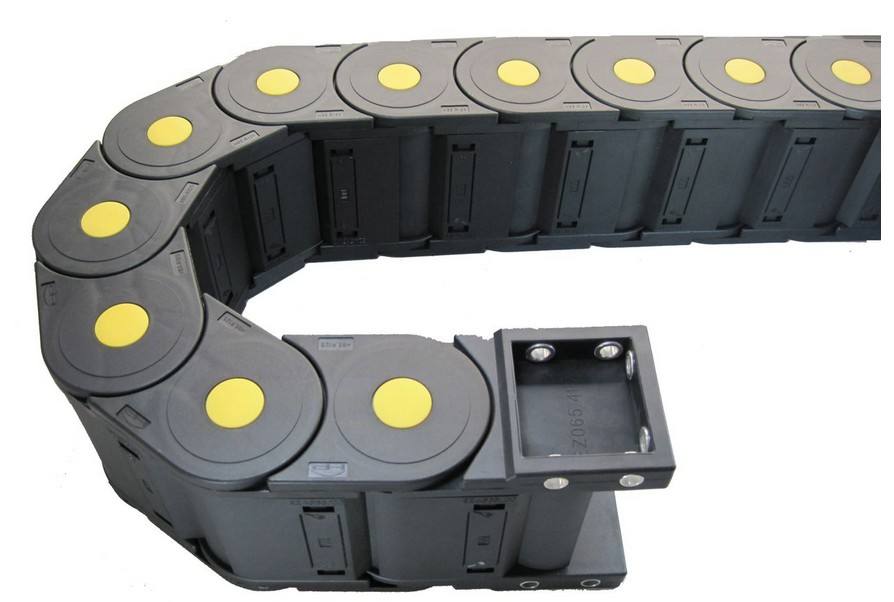 尼龍拖鏈的支撐板是尼龍拖鏈的潤滑問題的主要部件。尼龍拖鏈有三種支撐板的形式。尼龍拖鏈的拖鏈每節都能打開,便于安裝和維修。運動時噪音低、耐磨、可高速運動。適合于使用在往復運動的場合,能夠對內置的電纜、油管、氣管、水管等起到牽引和保護作用。